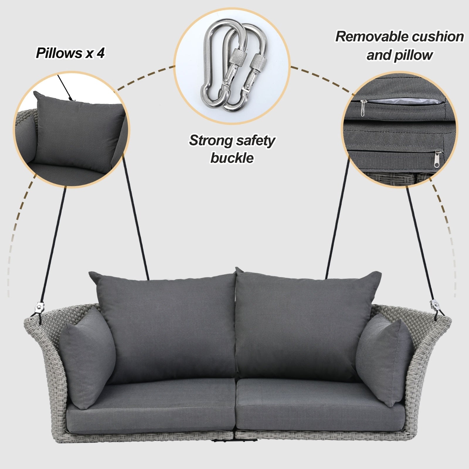 GO 51.9 2-Person Hanging Seat, Rattan Woven Swing Chair, Porch Swing With Ropes, Gray Wicker And C